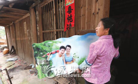 务江乡黄石村民王明英搬出儿子的结婚照。